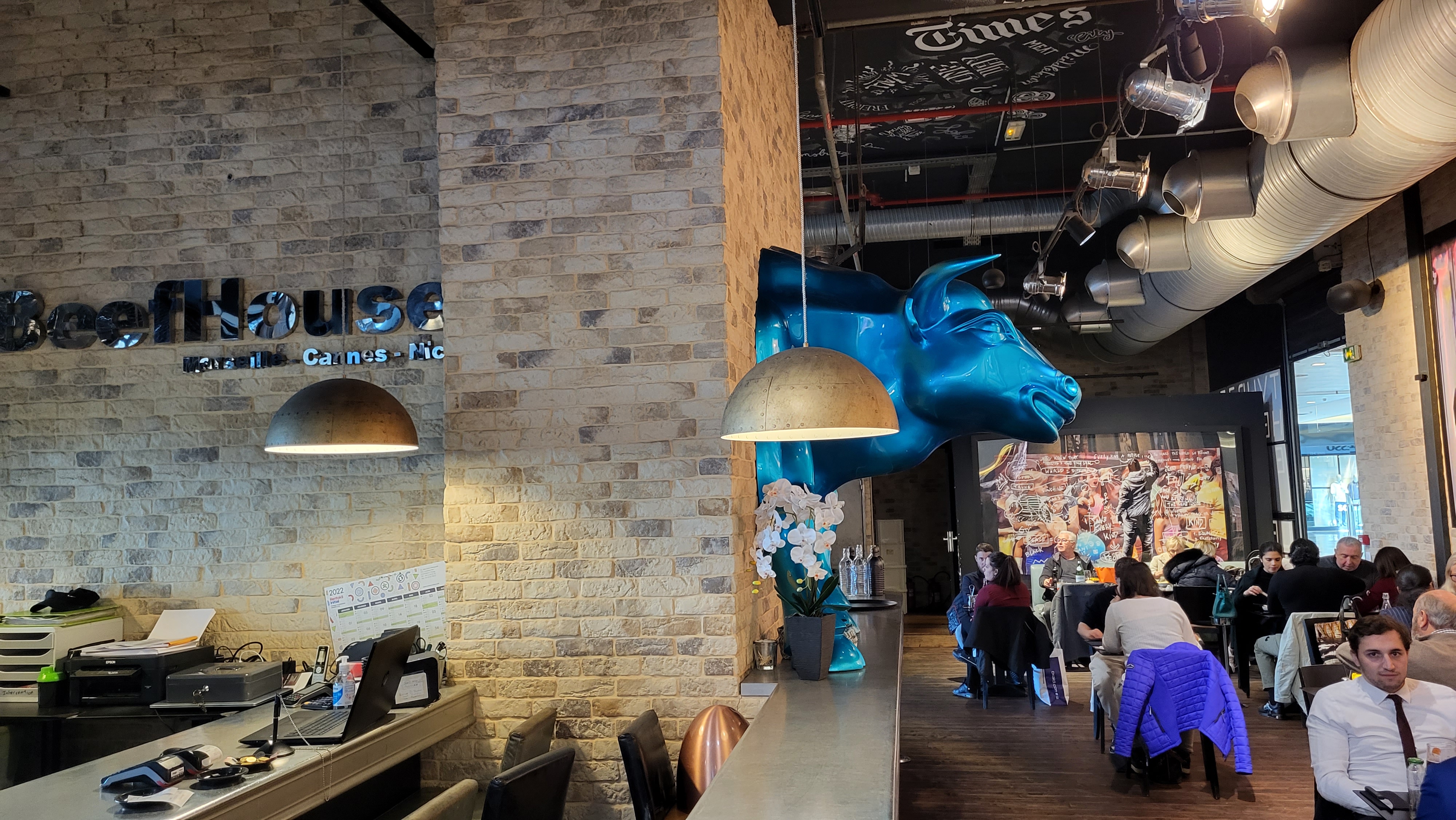 20 minutes de queue pour entrer dans le restaurant et seulement 2 passages d hôtesse pour nous acceuillir. A table 20 mns pour commander et le serveur fait des réflexions désobligeantes. Je ne peux pas pousser les murs. Vous êtes trop. Le sens du client devrait faire parti des formations chez beefhouse. A mediter