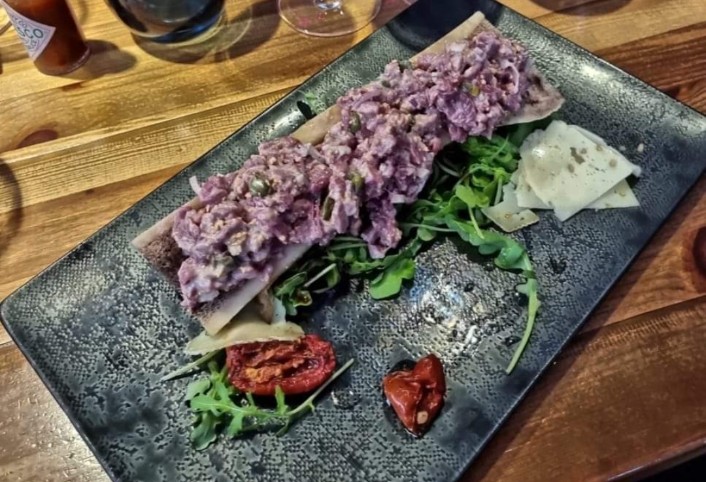 Posté le 19/11/2023 à 21:18"Tartare de boeuf servit dans un os à moelle, original mais dommage au niveau quantité, chère à mon goût, sinon pour le reste rien à dire, personnelles sympathiques et beau cadre"