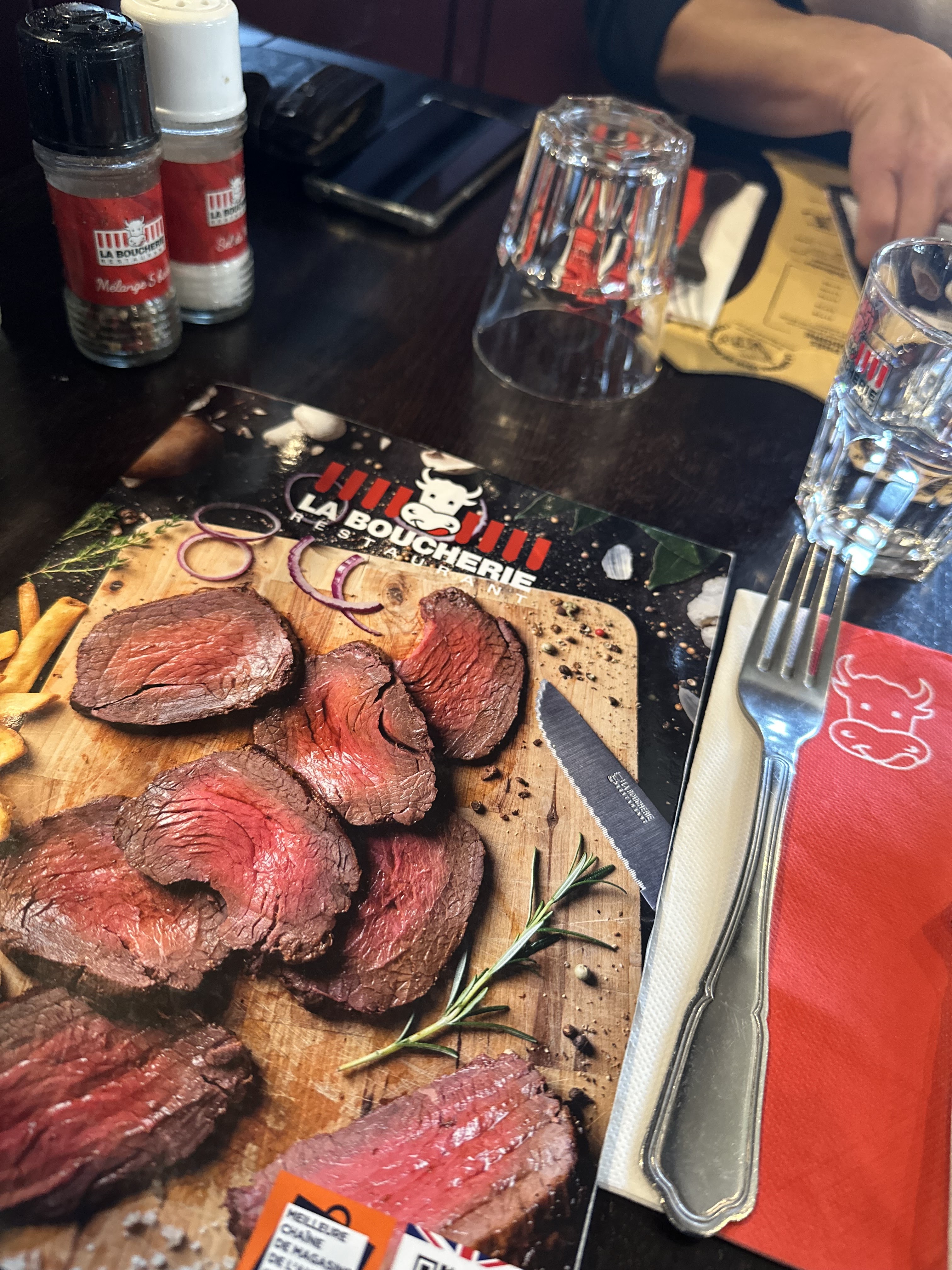Restaurant qui sert principalement de la viande comme son nom l'indique. Bon rapport qualité prix,la viande est très bonne et les prix raisonnables. Mentions particulières pour les desserts et l'équipe de service (jeune, à l'écoute et dynamique). Bravo et merci. Nous (en couple) avons profité d'un très bon déjeuner.