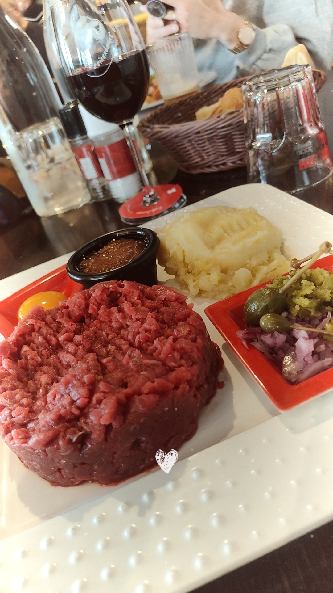 Rapport qualité/prix top Personnel agréable Nous n’avons pas pu profiter de la terrasse vue le temps mais l’intérieur est confortable Amateurs/trices de viande cru je vous conseille la « crulogie » Nous reviendrons