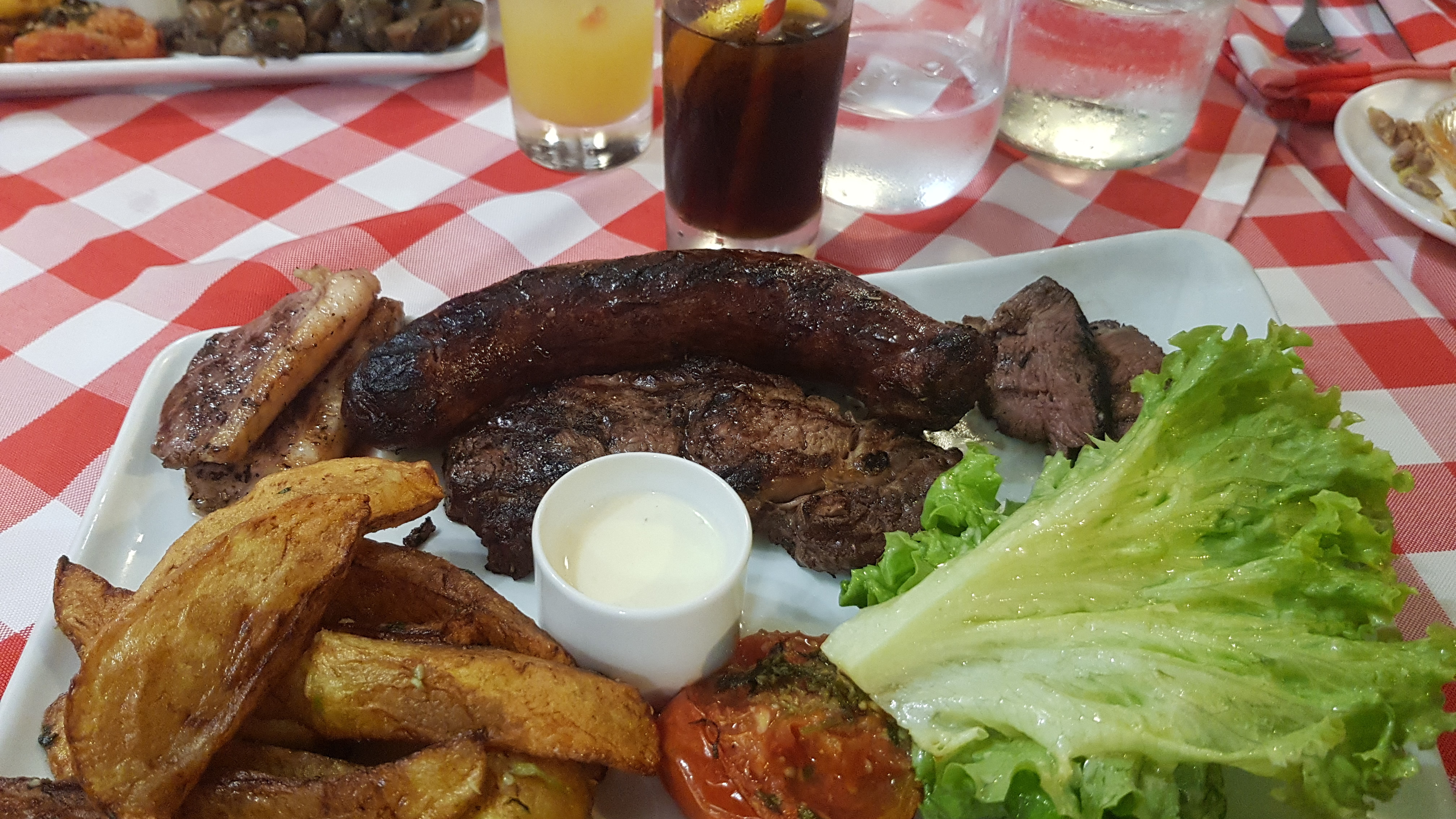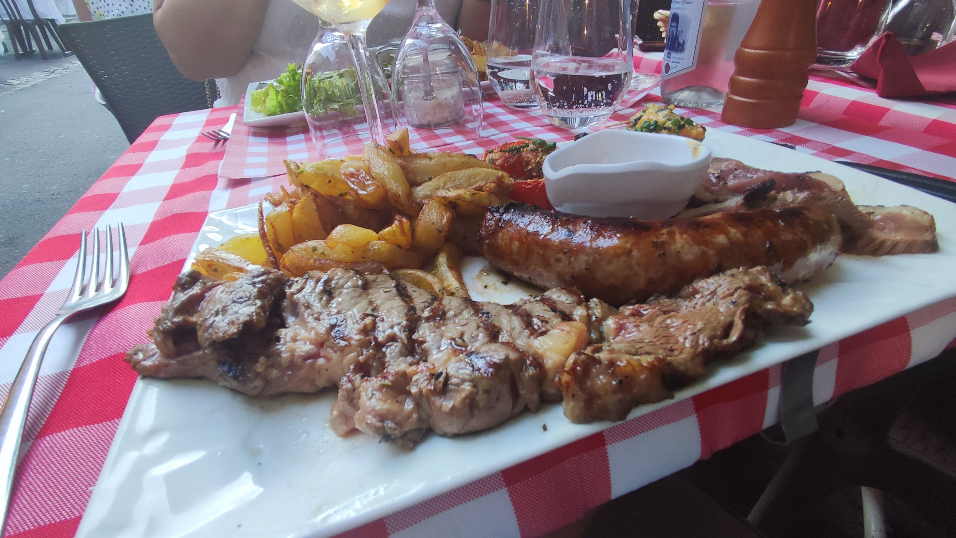 Posté le 14/08/2022 à 17:11"Accueil parfait, plats très copieux (même les salades) et délicieux. Les grillades se font devant nous. La parillade (saucisse, canard, boeuf) était excellente. Un petit plus pour nous: menu enfant inclut de la bonne saucisse (en plus des choix habituels). Nous nous sommes tous regalés."