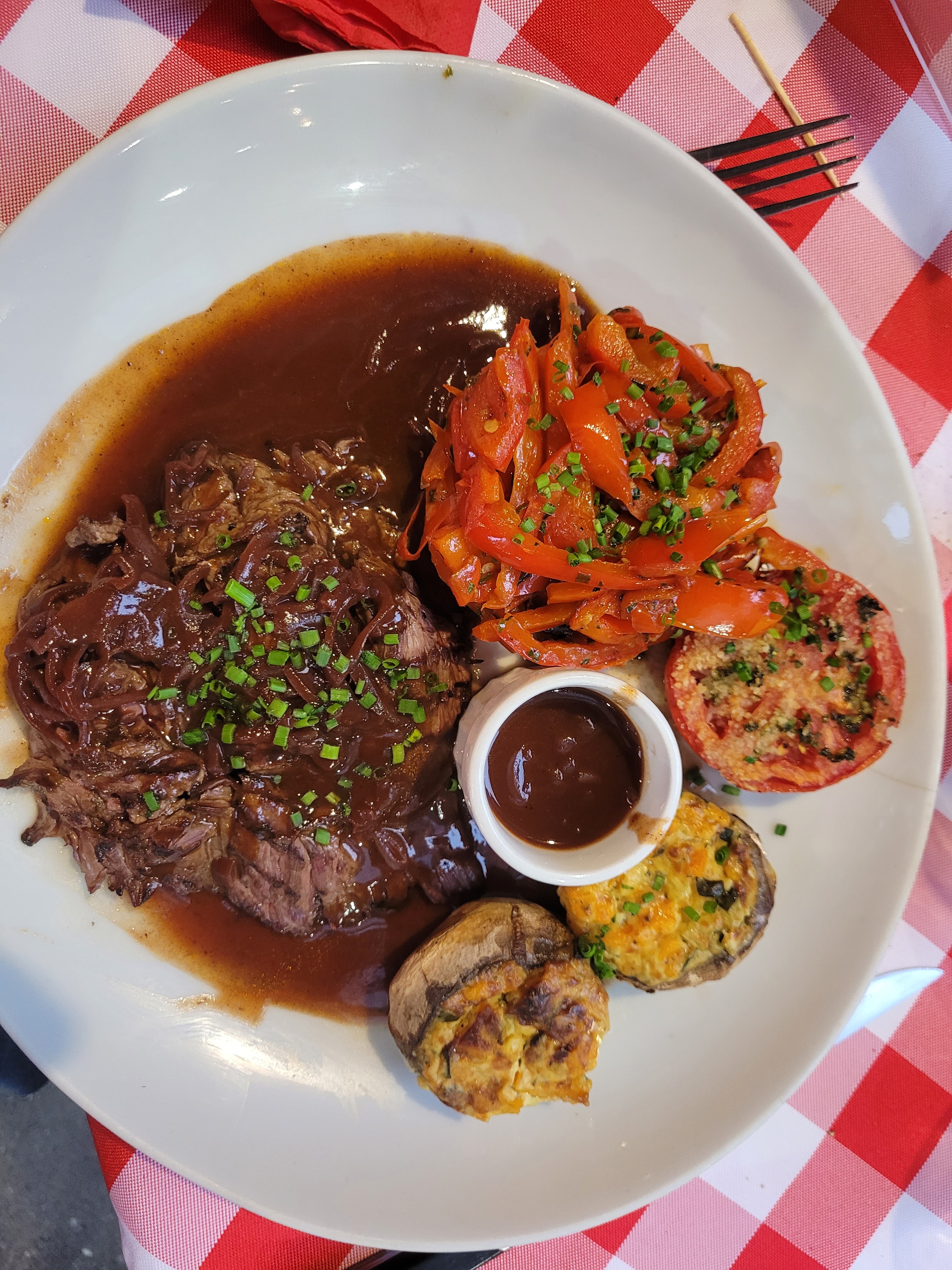 Posté le 28/06/2024 à 11:46"Super petit restaurant à l'ambiance très typique, au décor charmant et rustique, avec nappes à carreaux, etc... C'est un restaurant où l'on sert de la bonne viande braisée. Je le confirme; les viandes étaient délicieuses, d'excellente qualité, bien tendres, et la cuisson était conforme à notre demande. Par ailleurs, j'adore les brochettes, et j'ai donc été ravi de la formule proposant 3 brochettes variées: boeuf + poulet + saucisse de Toulouse). J'ai un peu moins aimé les 2 sauces que nous avions choisies avec nos 2 plats (Roquefort et Poivre). Elles semblent être cuisinées 'maison' mais elles sont un peu trop épaisses à mon goût (manque d'onctuosité). La saveur annoncée était bien trop discrète (probablement un mauvais dosage d'épaississant ou de crème, et pas assez de Roquefort / Poivre). Rien de bien grave, mais une sauce avec plus de caractère aurait sublimé nos plats. Le service était avenant et souriant. Très bonne adresse, on ne regrette pas !"