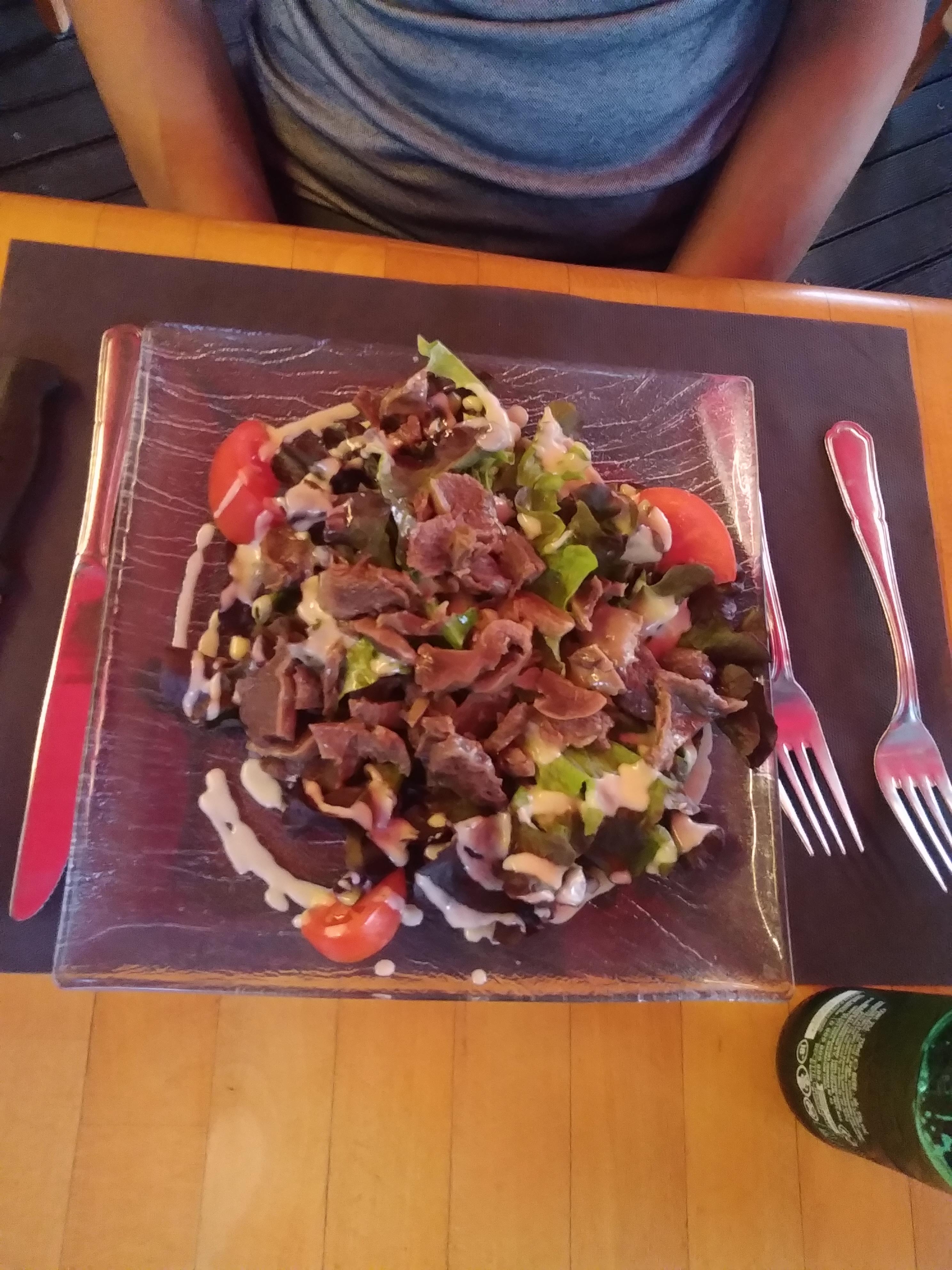Serveur (patron ?) très agréable et avec un humour piquant comme j'aime, très bonne cuisine et très généreuse, le seul bémol nous avons mangé en terrasse couverte et il faisait frais. Il y avait des chauffages d'extérieur qui étaient éteints, après nous n'avons pas non plus demandé à ce qu'ils soient allumés....