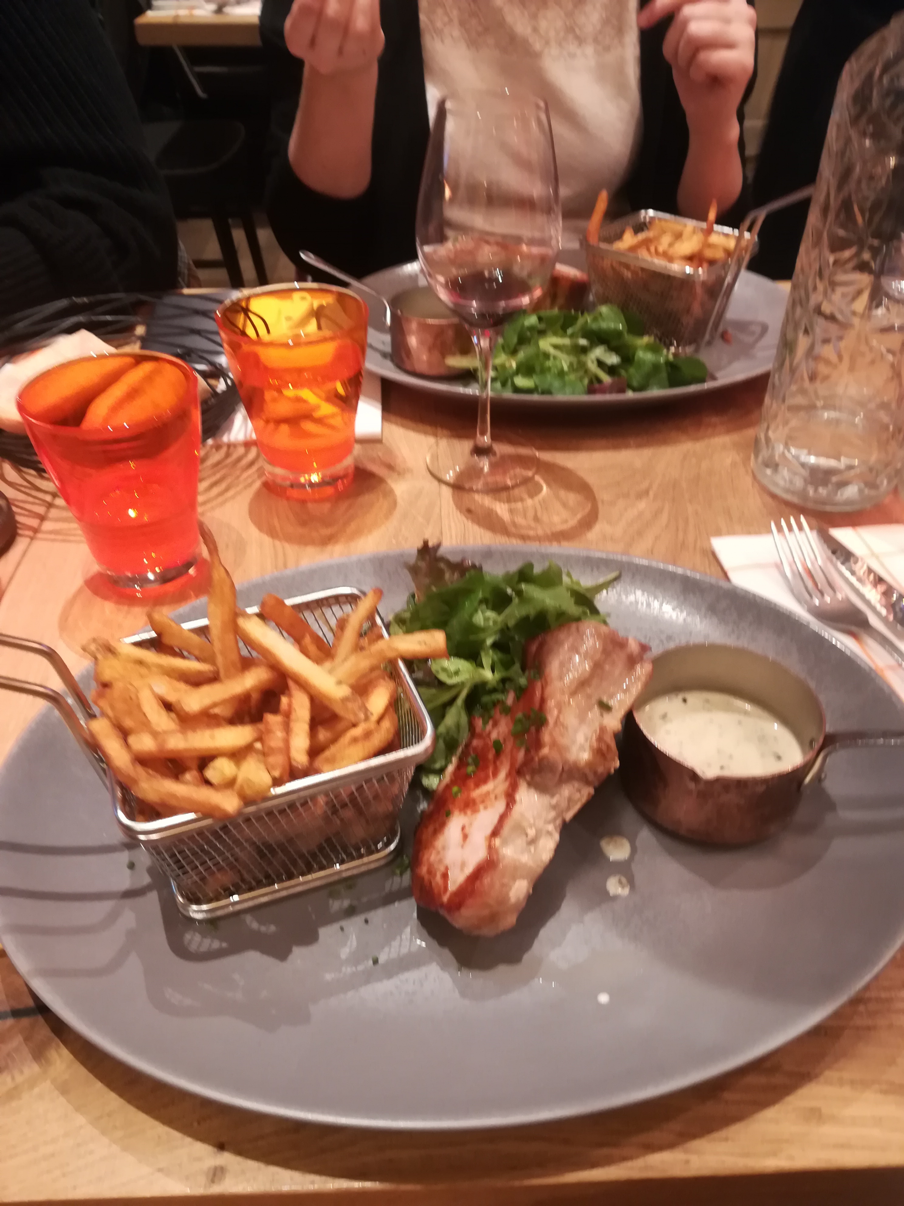 Hélas très déçu, nous avons pris une assiette de charcuteries à partager qui c’est avéré correct mais sans plus, puis un burger chicken également correct mais pas wouah ! Le plus décevant c’est mon plat un côté de bœuf individuel de « 450gr » … alors je cherche toujours les grammes de cette côte de bœuf et surtout l’énorme bémol c’est la quantité de gras dur et immangeable ! J’ai accompagné cette viande d’un verre de pessac qui n’avais aucun caractère …fade Bref vraiment pas conquis par cette première expérience, à voir c’était peut être un mauvais jour