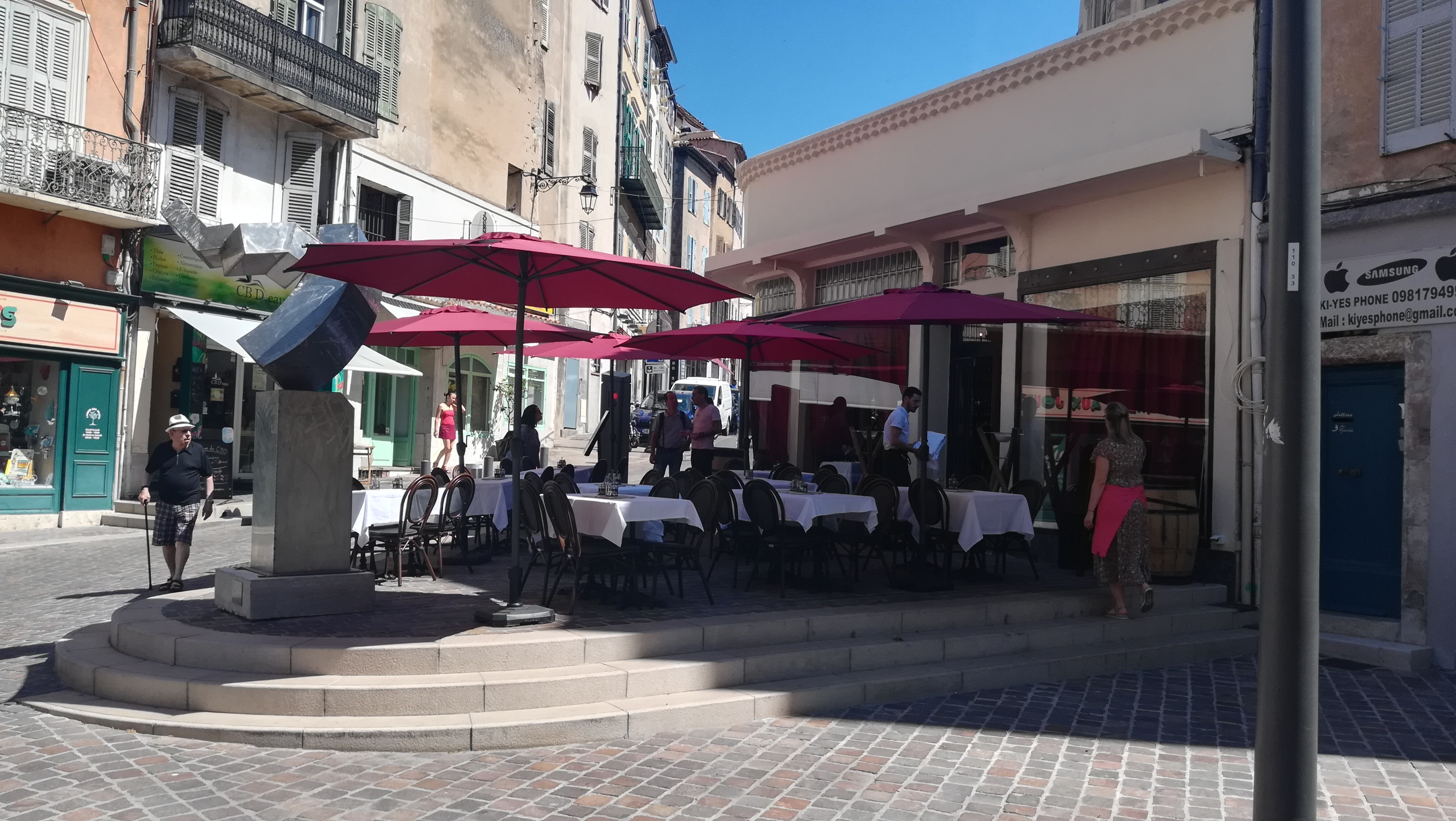 Restaurant en plein centre de la Vieille ville de Draguignan, rue piétonne au calme. Très bon accueil, gérants et personnels adorables. Les viandes sont exceptionnelles et rien a envier aux meilleurs restaurants. Sans hésiter je recommande les yeux fermés.