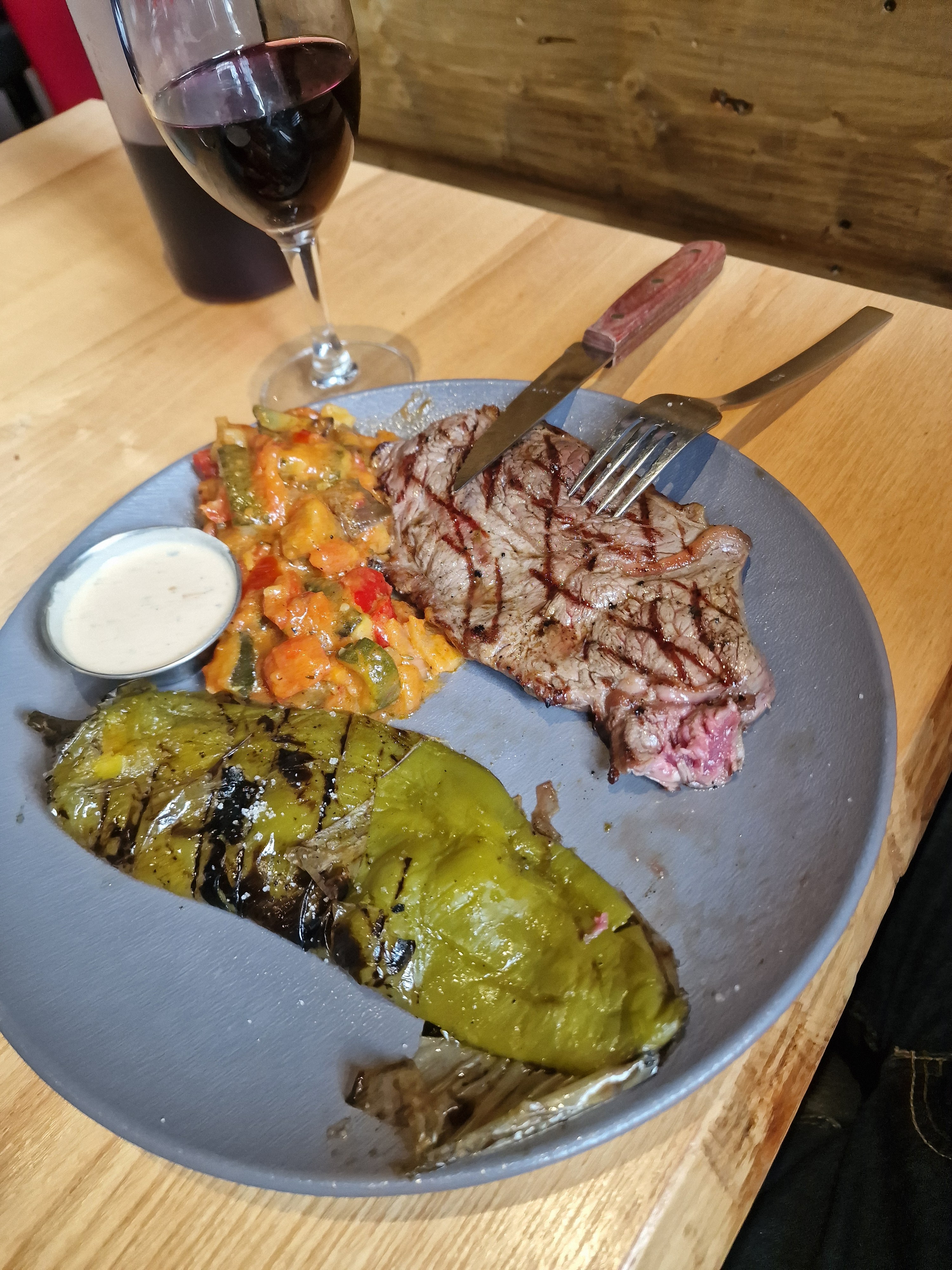 Posté le 26/12/2024 à 21:08"Le summum de la mal bouffe.charcuterie bas de gamme grasse trop salée.viande grillée onglet bof..servi avec des poivrons baignant dans l huile..avons quitté ce soi disant resto après ce plat.quant au tutoiement choquant pas des copains que je sache."