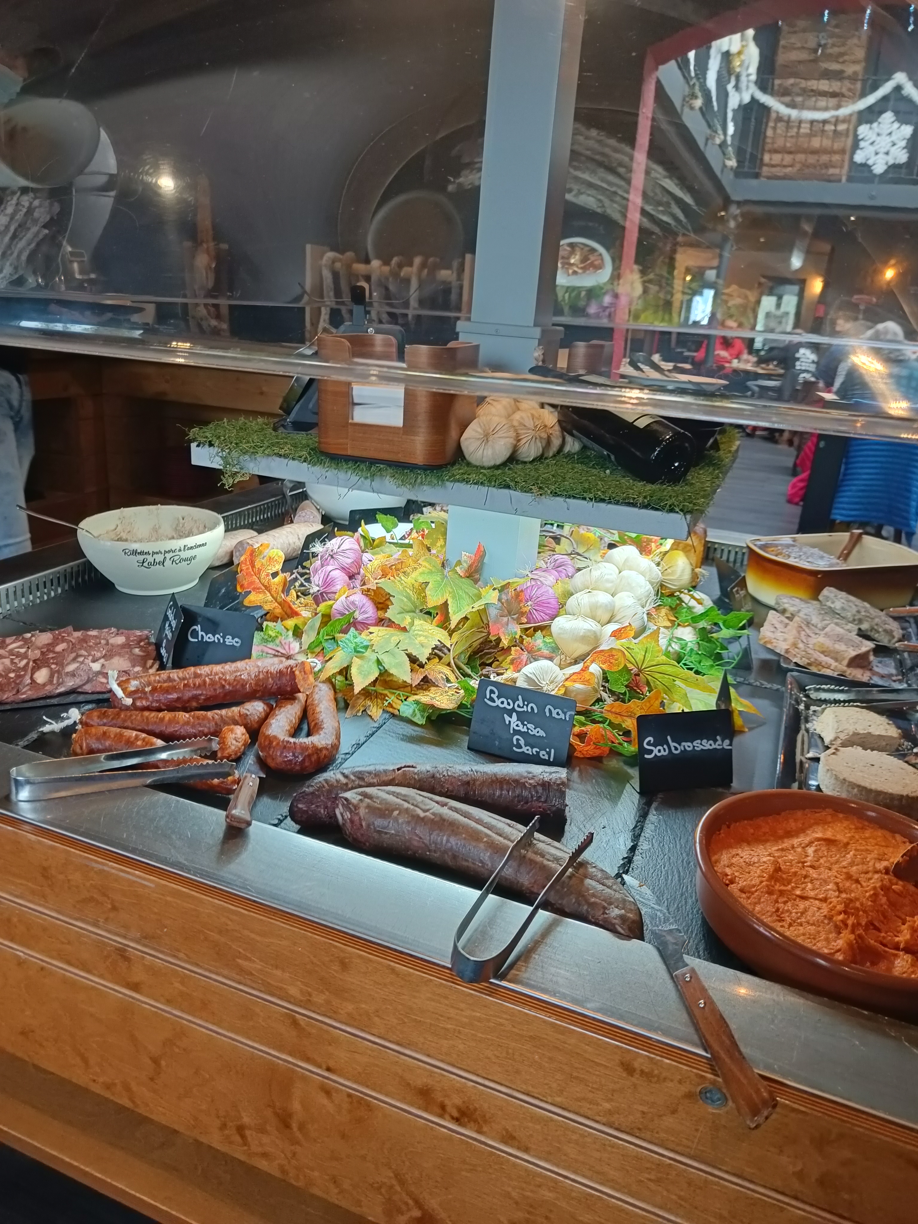 Posté le 12/01/2025 à 20:39"L'intérieur est chaleureux malgré les murs noirs. De suite, les serveurs vous mettent dans l'ambiance et vous demandent de les tutoyer 😉. L'entrée est composée de buffet de cochonnailles (à volonté) mais si vous avez pris aussi le grand menu avec toutes les viandes à volonté, je vous conseille de ne pas vous servir beaucoup d'entrées. Parmi l'ensemble des viandes, le plus tendre a été le pavé de cerf mais je ne vous cache pas que les autres viandes été très bonnes. Pareil que pour les entrées, si vous souhaitez tester pas mal de viandes, ne prenez pas d'accompagnement 😁, ou juste une fois histoire de tester. Enfin, le buffet fromage et dessert est également très bien. Terminez pas une glace artisanale qui n'a rien à voir avec les glaces classiques du supermarché. Niveau tarif, le menu le plus complet est à 35€ mais au vu de la qualité de ce que vous mangez, ce n'est pas excessif. Si vous y retournez une 2e fois, étant donné que vous avez pu mangé tout ce que vous vouliez en viande, le menu à 20€ sera amplement suffisant. Bon appétit 😉😉"