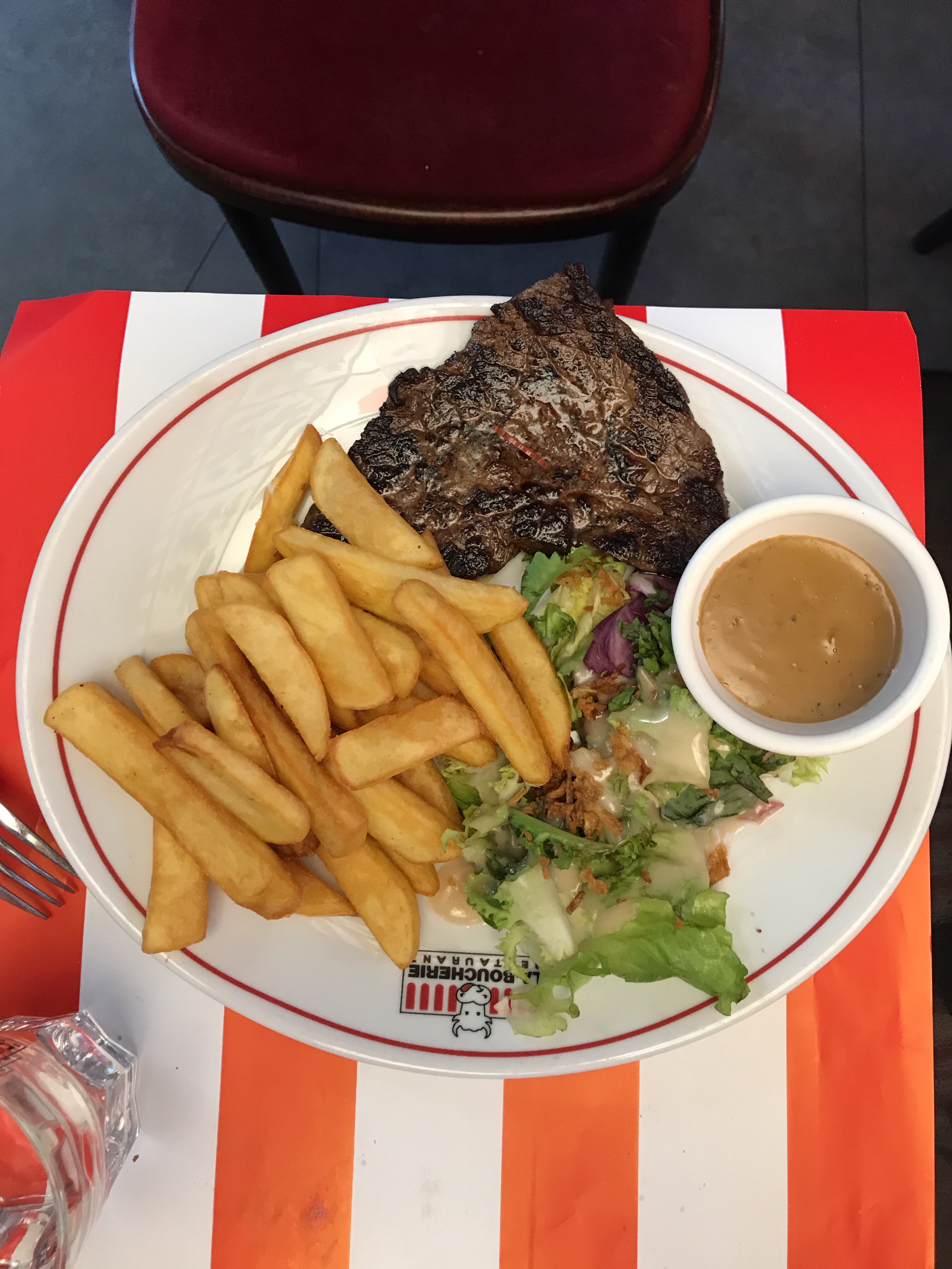 Nous avons l’habitude de venir à la boucherie, mais nous avons été très déçus . J’ai pris le même plat que d’habitude qui est l’émincé de bœuf les frites été beaucoup trop cuite. Je suis jamais exigeante mais là ce n’était pas possible. Ensuite, la salade n’est pas très garnies auparavant c’était mieux. Nous sommes parties sans prendre de dessert et très déçus du restaurant dommage.