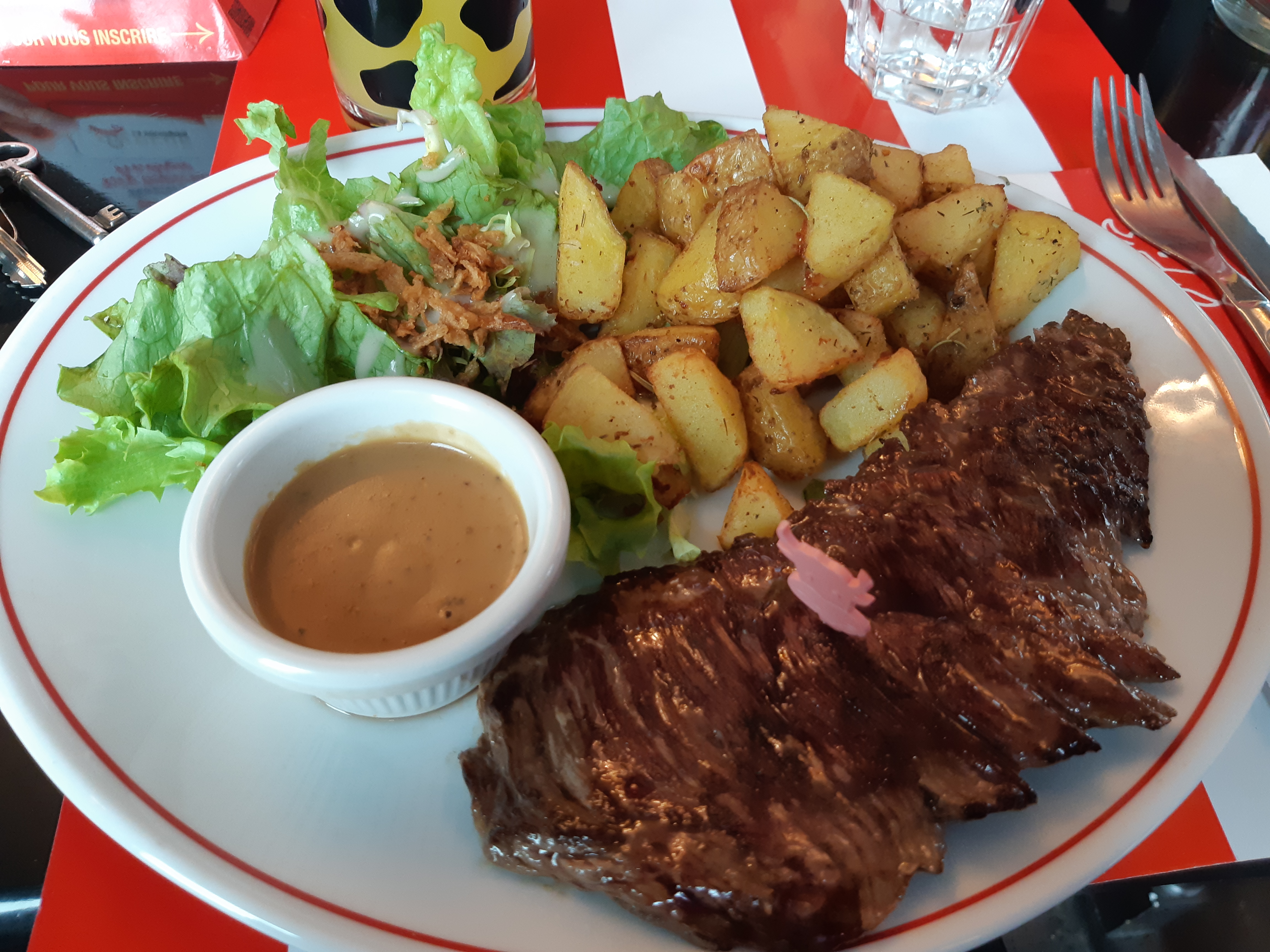 J'y suis allée hier : le steak haché n'était pas bien cuit, il y avait encore du sang à l'intérieur. De plus, il n'était pas d'un goût exquis et peu chaud. J'ai été étonnée qu'on m'ait donné deux steaks l'un sur l'autre pour un steak dit moyen sur le menu. La sauce que je n'ai pas eu le droit de choisir -je ne sais pourquoi- n'était pas bonne. Par contre, accueil et planchette apéritive sympas.