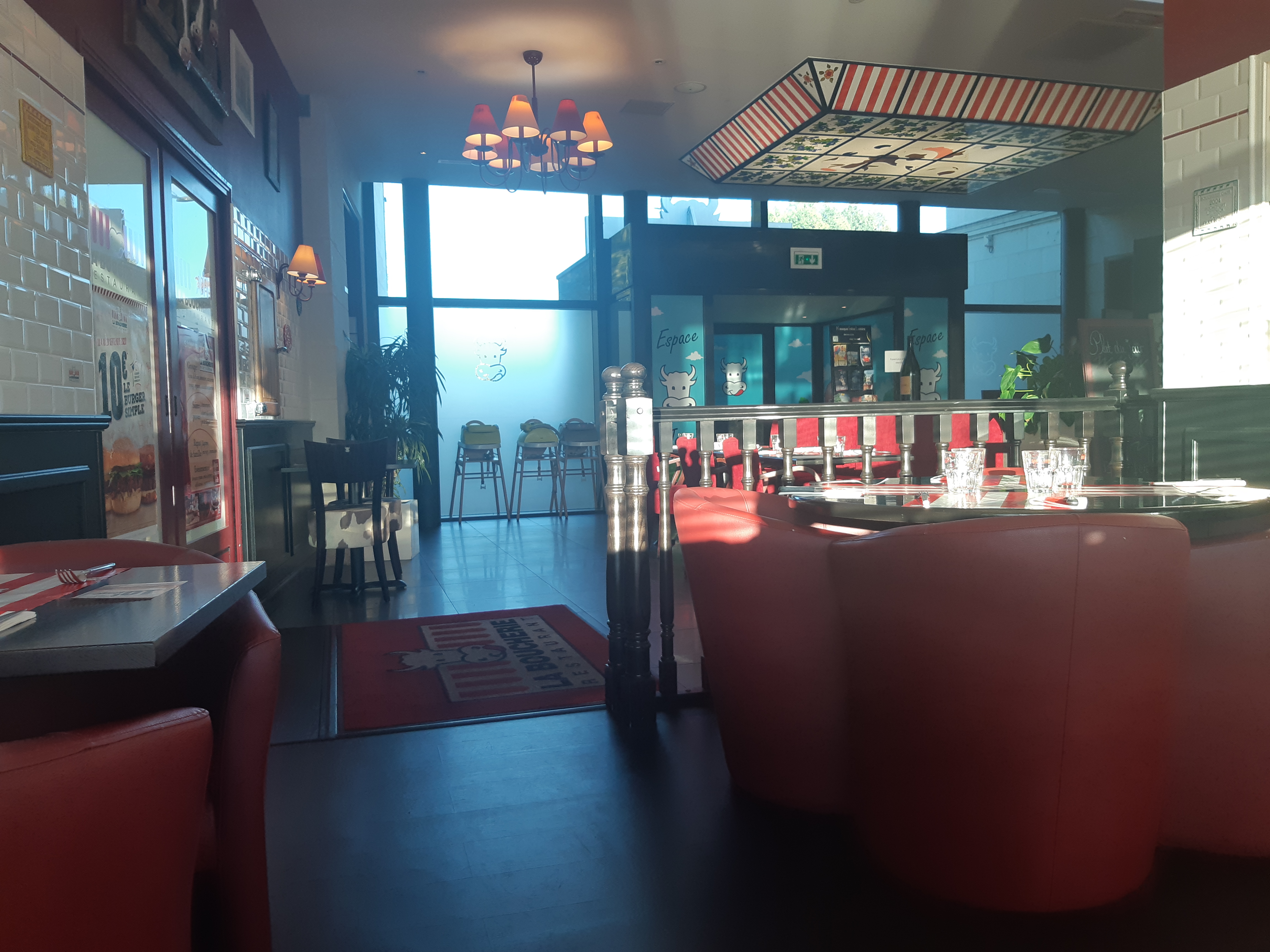 Restaurant à rénové d’urgence Poignée cassé Pas de poignée et savon aux toilettes Pas de coloriage donnés aux enfants. Lumières salle de jeux absente. Pas d’accompagnement sucrerie avec le café. Plats servit radicalement froids et sans saveur pour l’un. Je fais d’autres restaurant la boucherie et l’accueil n’est pas du tout celui ci. Nous ne referons pas ce restaurant malgré les efforts du service