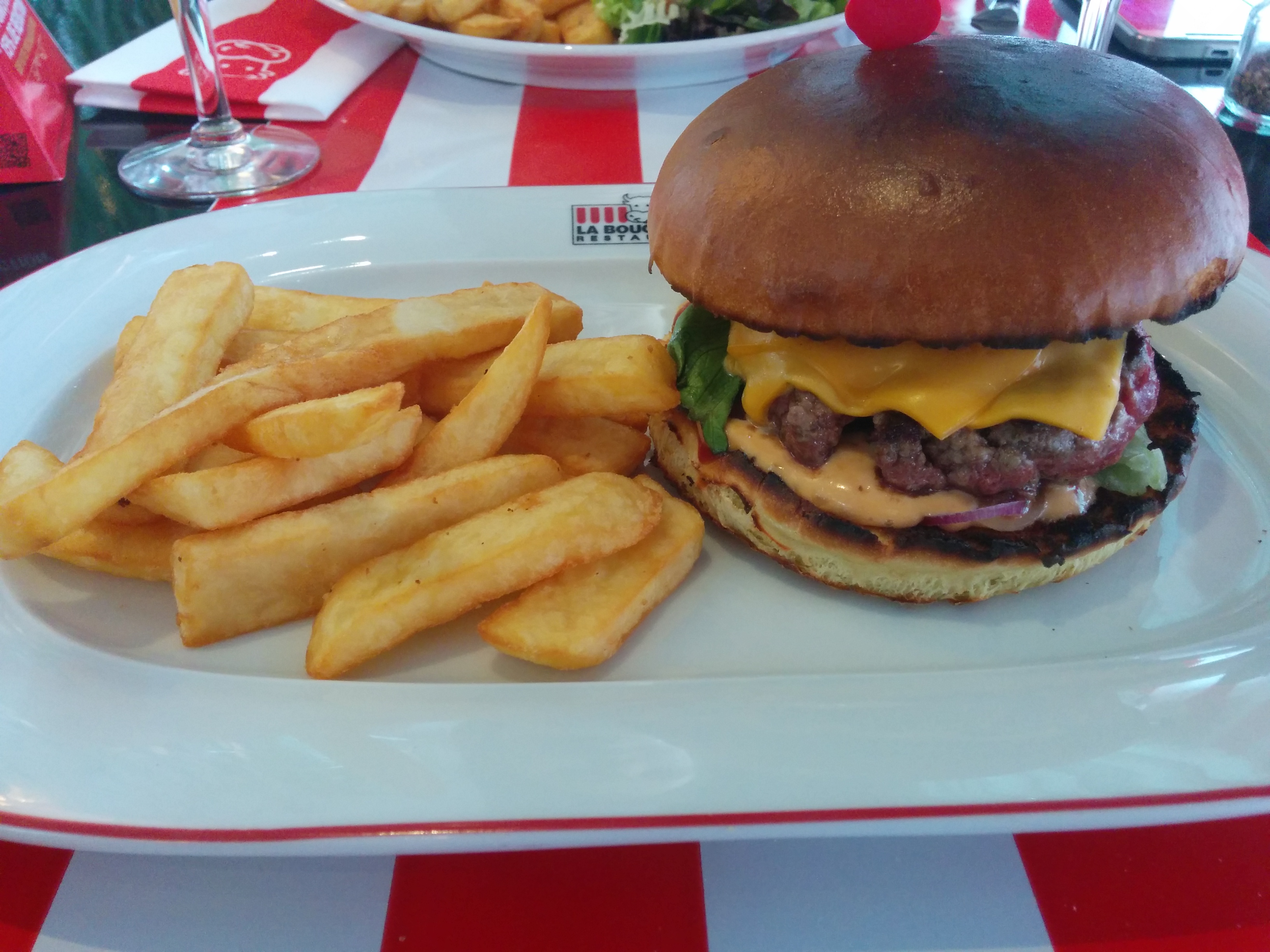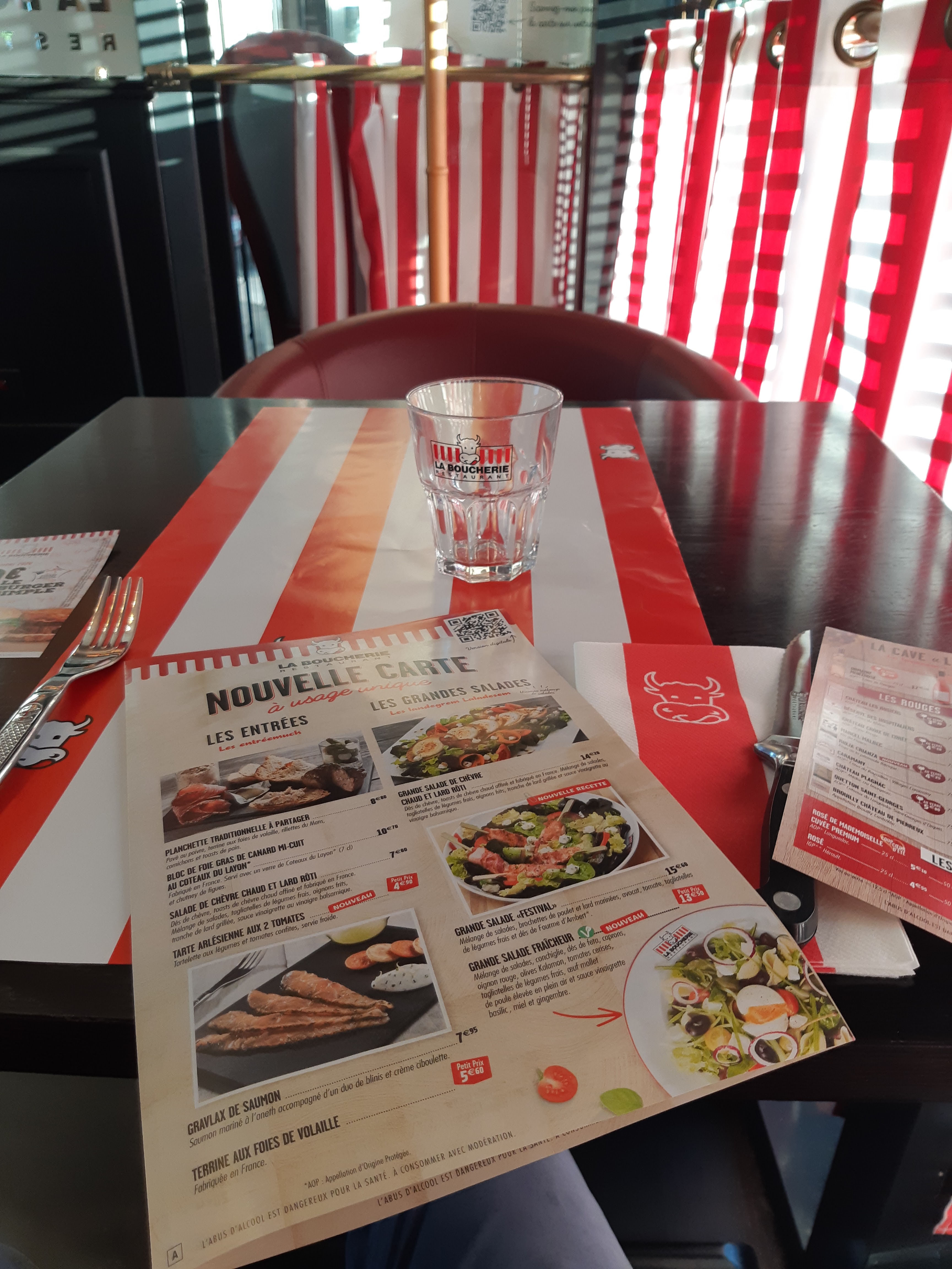Une belle expérience, un BON RESTAURANT !! Bonjour, à 6 nous avions commandé différents plats ou formules... Pour la cuisine, RIEN À DIRE : que ça soit une salade ou un Burger accompagné de frites, TRÈS BON ET GOUTU, NI TROP GRAS, PARFAIT !! On est callé. Un service de même envergure, peu de choses à dire : un personnel souriant, accueillant et à l'écoute. Dans le service, on peu néanmoins noter QU'IL FAUDRAIT RACHETER OU ACHETER UN LAVE-VAISSELLE, en effet, arriver au dessert des cuillères SALES mais ils ont été changer sans aucun problème ! Une attente peut-être un peu longue MAIS ÇA VA et cela est sûrement dû à un membre du personnel qui a quitté les lieux en pleurant donc je ne peux rien dire. Pour l'ambiance, c'est surprenant ! Partout, quand je dis partout, c'est partout (ou presque) il y avait écrit La Boucherie (le nom du restaurant) : les serviettes, fourchettes, couteaux, assiettes, verres, le sol, dans les toilettes,... on est tout de suite plongée dans l'univers. De plus, le restaurant salut à haute voix le personnel à chaque personne qui paye. Une ambiance très cool. De petites erreurs MAIS JE RECOMMANDE, à ça 🤏 des 5 étoiles...