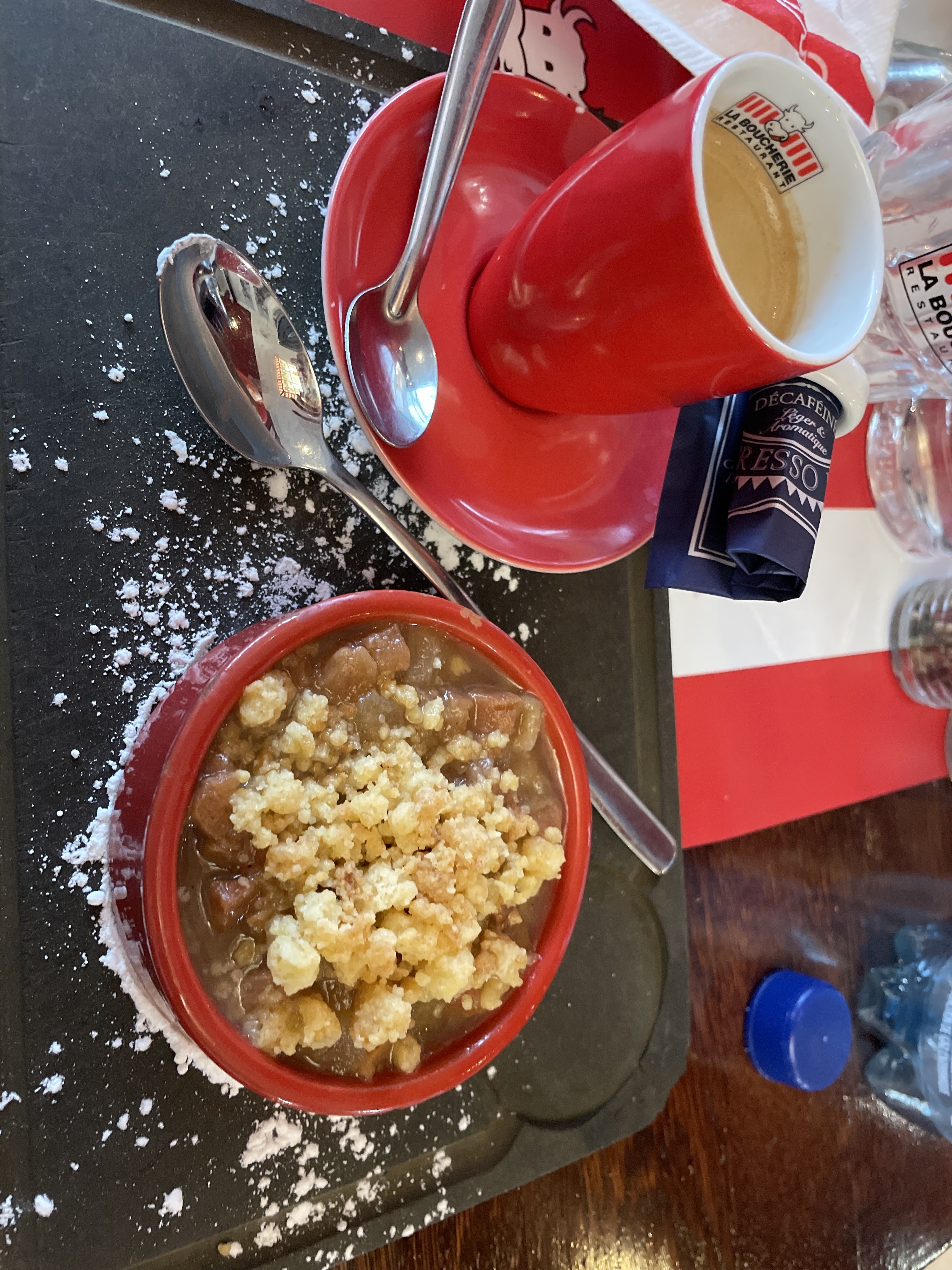 Nous n y retournerons plus. On était une 10aine pour passer un bon moment. Malheureusement 14h00 arrive, la serveuse est pressée et sur ton d un militaire allemand répond à mes questions et prend la commande qui est expéditive. Et oui ils ferment à 15h. J en tiens mot à la responsable qui me répond qu elle est comme ça donc limite on doit faire avec. Les plats tièdes arrivent on n ose même pas leur dire. Bref l accueil digne d une sortie de train allemand, le service à la hauteur de l accueil. Bon allez les prix ont augmenté mais ne correspondent qu à moitié à la réalité de la carte. Tout ne se vaut pas. Mais bon. Merci pour ce moment gâché et merci de ne pas vomir sur le restau qui se trouve juste à côté (le bureau) qui sert toute la journée et dont l accueil est mille fois plus agreable que chez vous. Nous avons terminé chez eux et on s est régalé avec nos desserts au moins ça