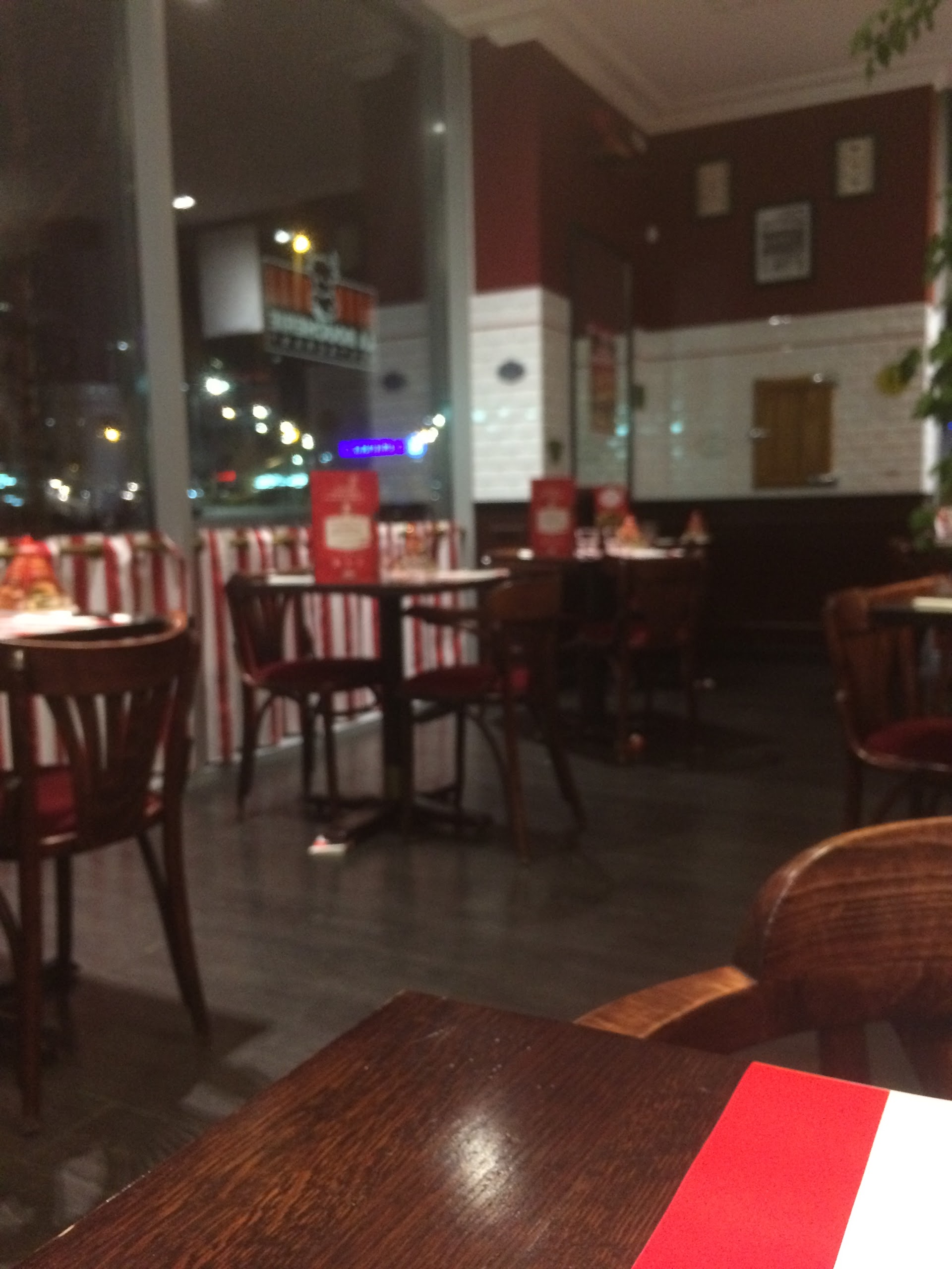 Vraiment pas terrible … Je préfère encore manger au flunch … -Déco vieillotte -3 personnes pour faire la cuisine, servir, prendre les commandes et encaisser. Est-ce normal ? -Repas pas terrible et cher pour ce que c’est -Boisson gazeuse reçue non gazeuse (est-ce trop difficile d’acheter des canettes comme le font tous les restaurants ??) honteux de payer 3,90€ pour un pepsi sans gaz et d’un goût bizarre (soit vous utilisez une soda stream ou une préparation en poudre pour faire vos boissons…) - chauffage en panne (et apparemment cela fait plusieurs semaines) Je n’y remettrait pas les pieds. RAS concernant les 3 salariés qui font du mieux qu’ils le peuvent.