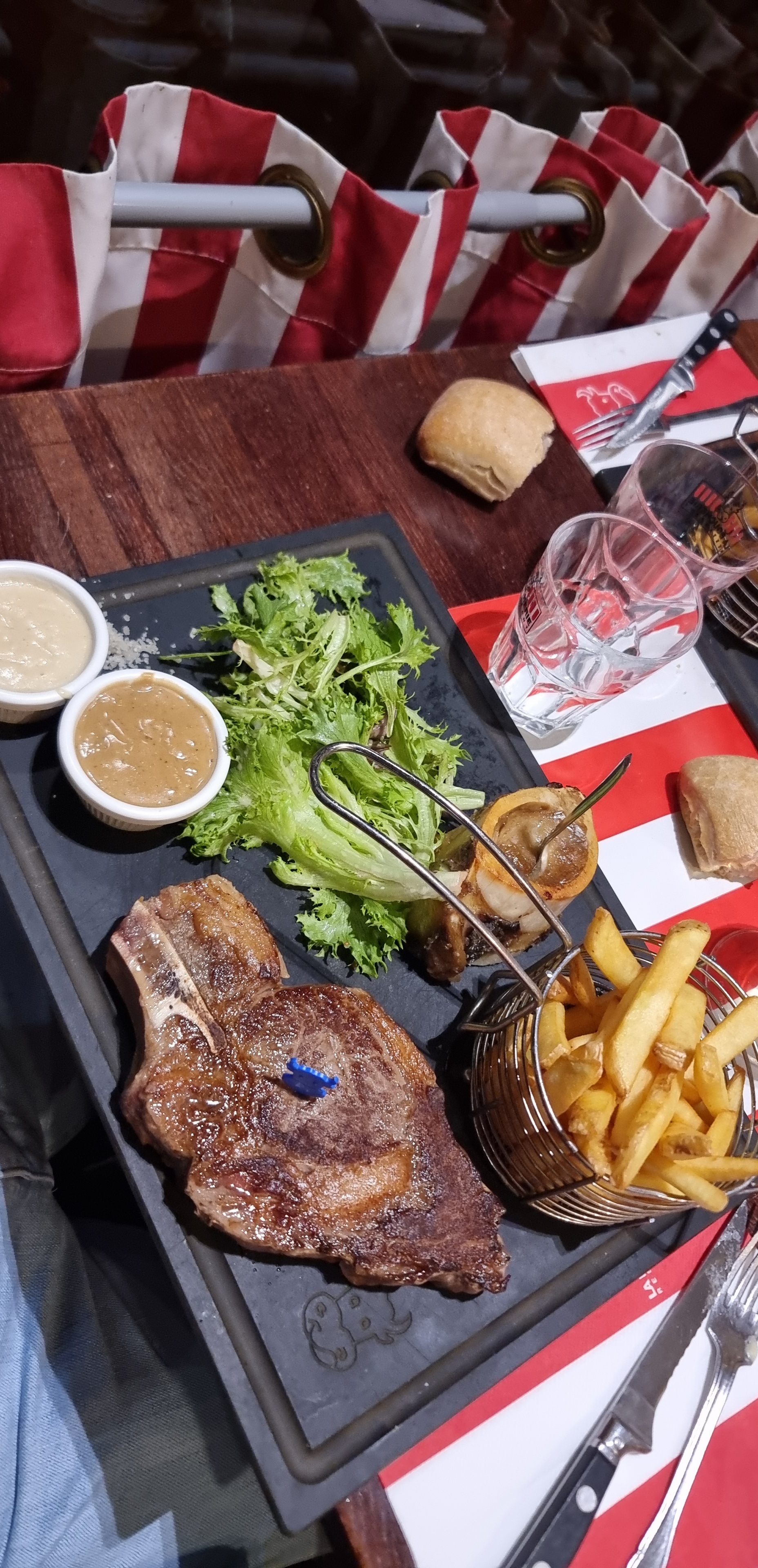 Très bon service , serveuse et responsable sont très chaleureux à recommander Cote de bœuf 400g excellente Merci à vous