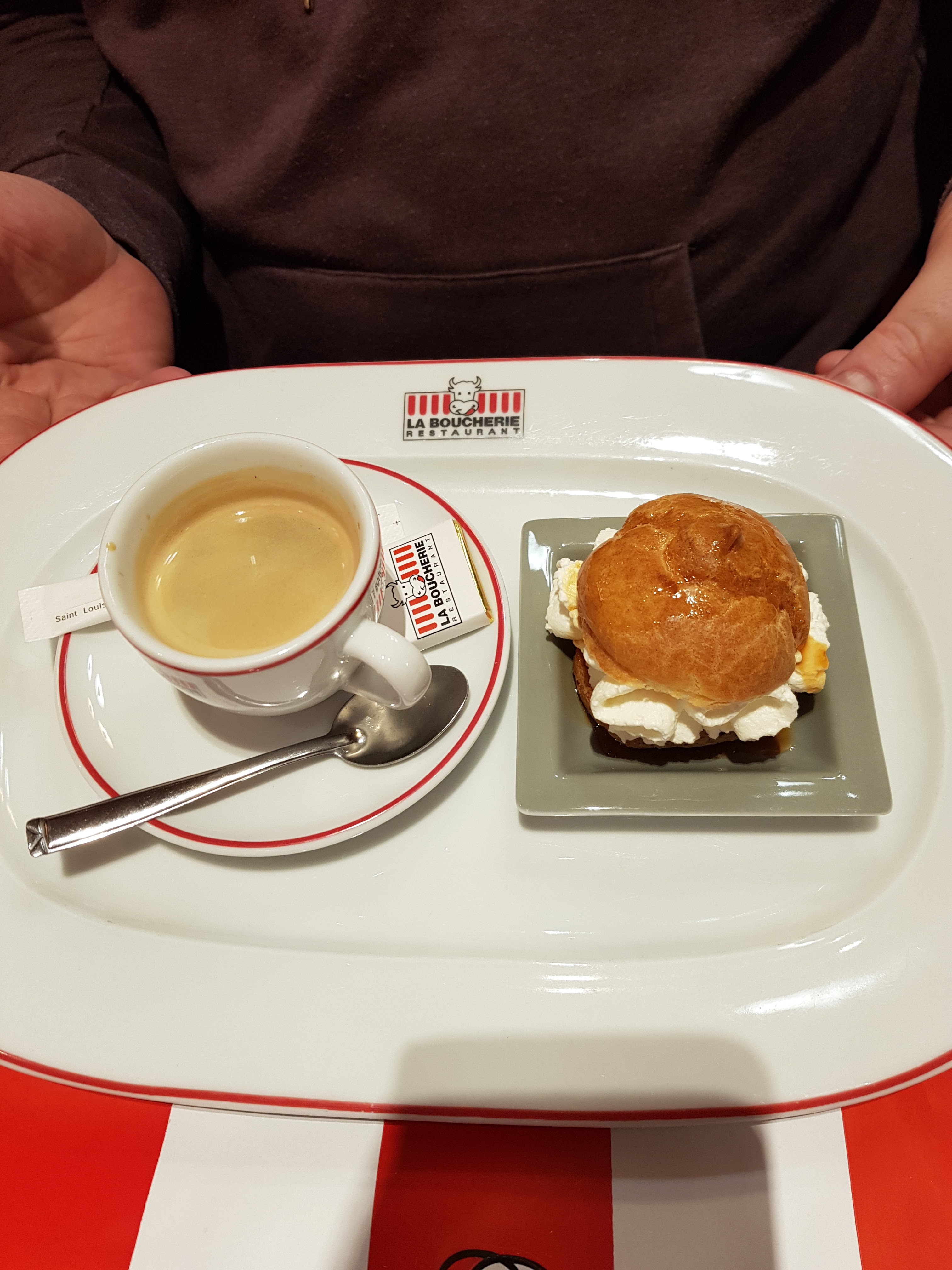 De tout ce qui ce trouve dans cette zone en terme de restauration. La Boucherie et vraiment top , un personnel au top ( serveuse , cuisinier(ère)) les plats sont vraiment très bon . Et le patron et vraiment très bien il sait vous accueillir et vous conseiller pour vos choix . Je n'hésiterai pas pour y retourné, je conseille ce restaurant à tout point de vue . Merci à vous pour ce repas . P.s merci pour le guignolet 😉