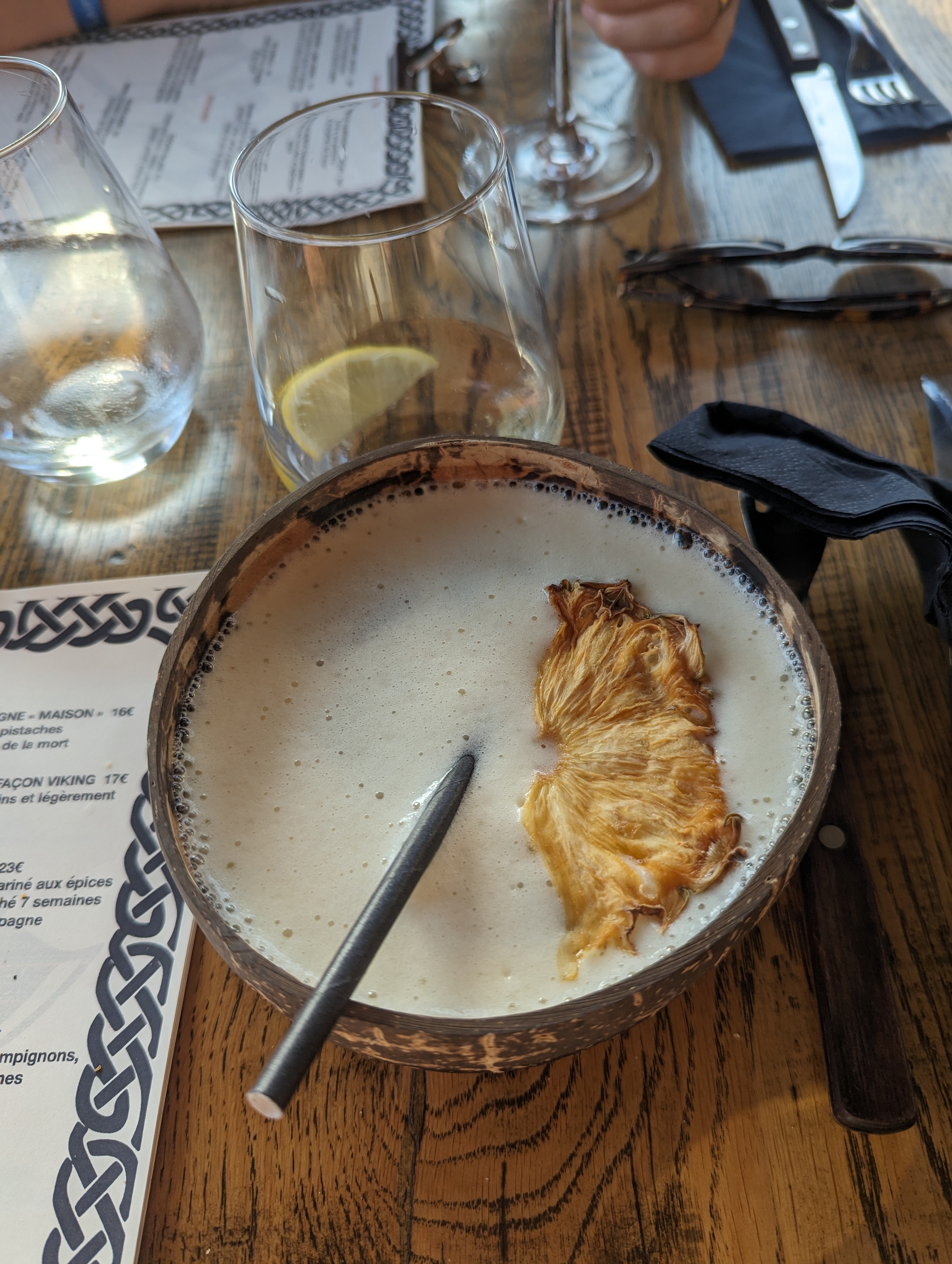 Posté le 20/06/2021 à 10:29"Restaurant sympathique, les menus sont super sympa, adaptés au décor de vikings. Dommage que le concept ne soit pas poussé à fond, avec encore plus de déco viking ça aurait été magique ! Concernant le service nous avons eu affaire à 4 personnes différentes et qui ne semblaient pas très organisées car on nous a demandé plusieurs fois les mêmes choses. Nous avons également dû redemander de l'eau et le digestif car on nous oubliait. Sur les 2 serveurs les 2 plus jeunes étaient très serviables et sympathiques et les 2 plus anciens beaucoup moins. L'un d'eux voulait absolument nous vendre sa viande mâture à 90 euros le kilo et l'autre se la jouait trop aimable, à tel point que ça sonnait faux. Néanmoins la nourriture était très bonne et faite maison. Les prix sont élevés, dommage parce que ça coupe l'envie d'y revenir de si tôt."